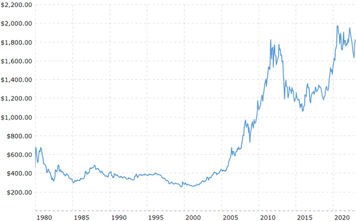 34: “Gold Prices—100 Year Historical Chart,” Macrotrends, accessed June 21, 2023, www.macrotrends.net/1333/historical-gold-prices-100-year-chart.