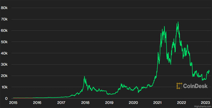 Figure 13: Bitcoin Prices, Jan 2015 to Feb 2023