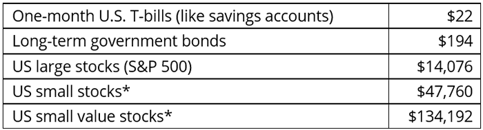*Small stock returns shown from 1928 to 2021. Source: Dimensional Fund Advisors Matrix Book 2022. Past performance is no guarantee of future results.