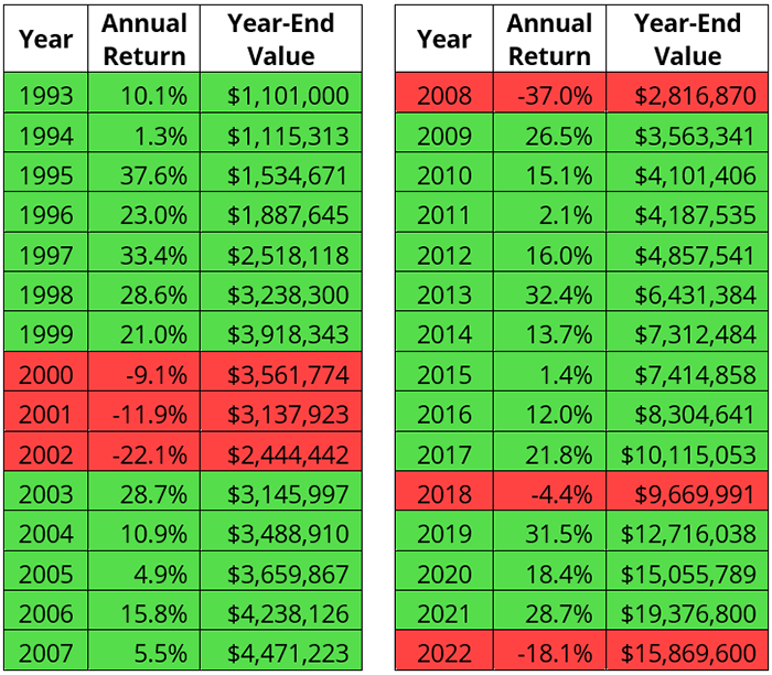 Figure 16: S&P 500 Compounded Annual Returns, 1993-2022, Starting with $1,000,000