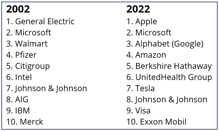 Figure 3: Ten Largest U.S. Companies Then & Now