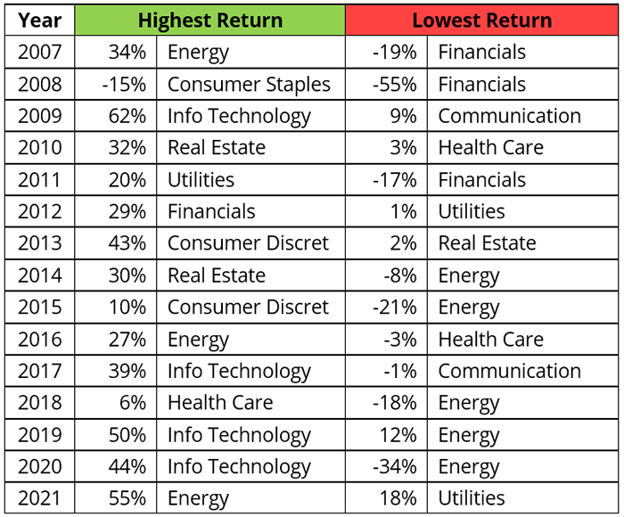 12: “Annual S&P Sector Performance,” Novel Investor, accessed June 19, 2023, novelinvestor.com/sector-performance/.